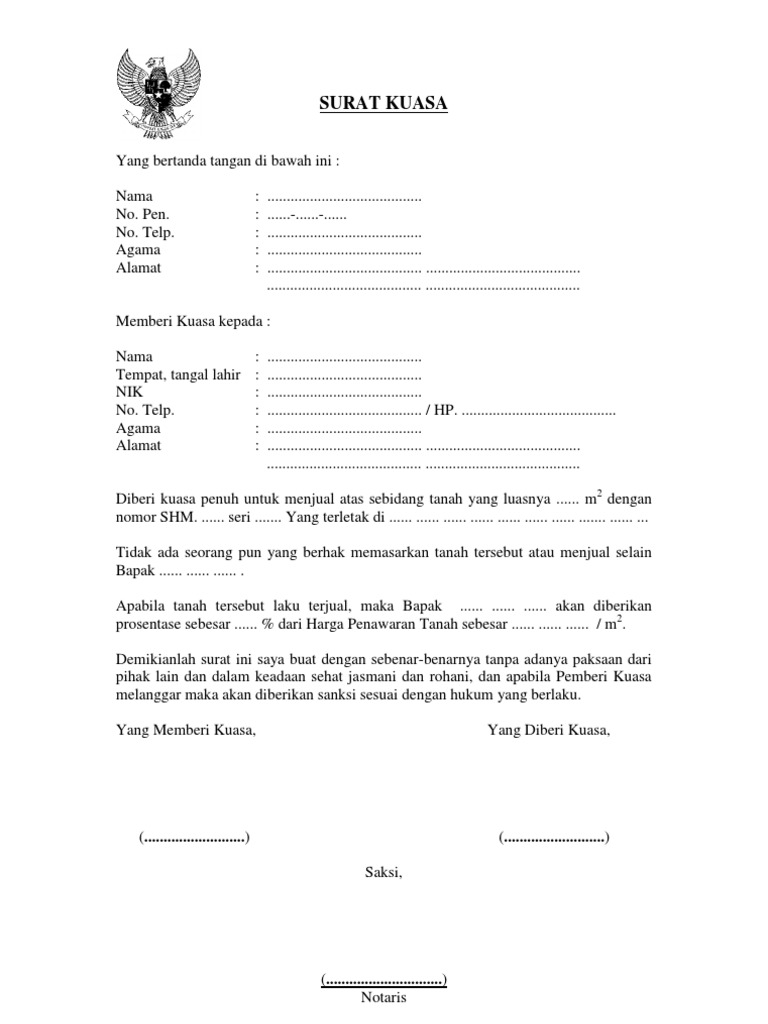 80 contoh surat kuasa penjualan tanah surat kuasa penjualan tanah biasanya digunakan pada saat terjadinya proses jual beli tanah.